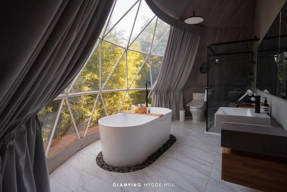 寬敞舒適的豪華球型帳篷,配備獨立衛浴、冷暖氣設播,四季皆宜,讓您在山間盡享極致舒適,每一頂帳篷擁有50坪獨立的戶外休憩平台,您可以獨自沉浸於大自然的低語,感受微風輕拂樹梢的悸動,或與摯愛親友圍坐,一同迎接日出的金色晨光,讓陽光灑落肌膚,喚醒美好的一天。