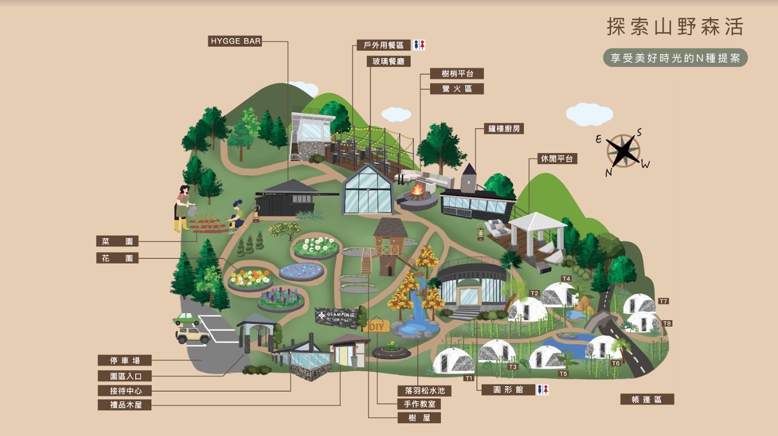 超過萬坪的 Glamping Hygge Hill 山野森活的營區場地都是你的酒吧,拿著調酒、飲料,輕鬆自在地悠遊,賞玩花卉,坐看雲起。